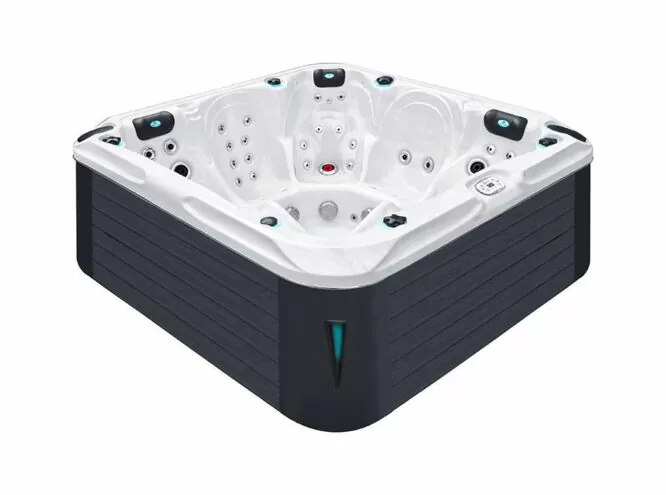Product listing – Specs Dimensions: 213 x 213 x 91 cm Number of people: 5 Number of jets: 60 Price £10,390.00