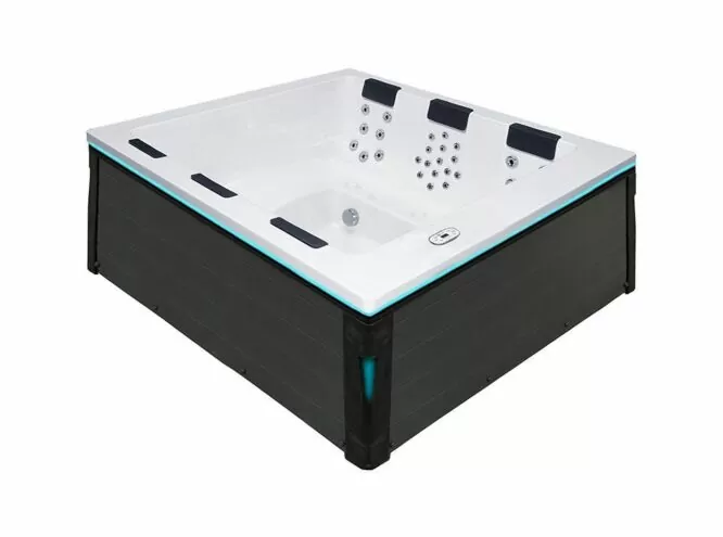 Product listing – Specs Dimensions: 243 x 224 x 93 cm Number of people: 6 Number of jets: 48 Price ÂŁ12,995.00