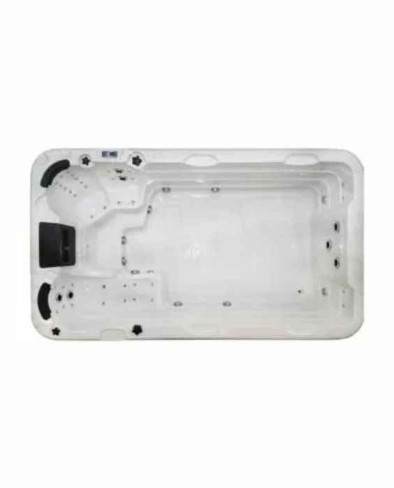 The Aquatic 1 Swim Spa from Oasis Spas is the ultimate solution for those looking for a compact yet versatile swim spa. Measuring 13ft in length, this swim spa offers ample space for swimming and includes comfortable seating for relaxation. Equipped with powerful pumps that produce a robust current, the Aquatic 1 allows for an excellent in-place swimming workout. The spa also features interior and exterior LED lighting for a stylish and illuminating experience.
